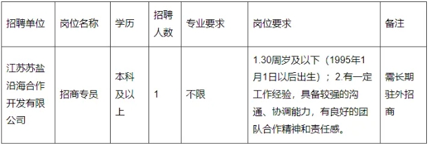 (三)工作地點:蘇州鹽城沿海合作開發園區管委會(鹽城市大豐區大豐港區崇文路1號);