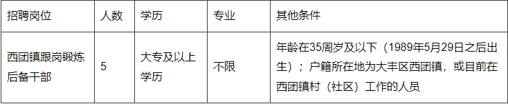 根據(jù)工作需要,鹽城市大豐區(qū)西團(tuán)鎮(zhèn)人民政府面向社會公開招聘跟崗鍛煉后備干部5名,現(xiàn)公告如下: