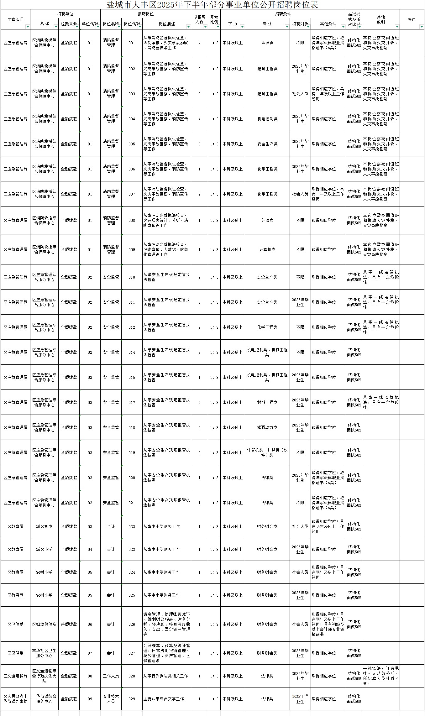 附件1:鹽城市大豐區2025年下半年部分事業單位公開招聘人員崗位表