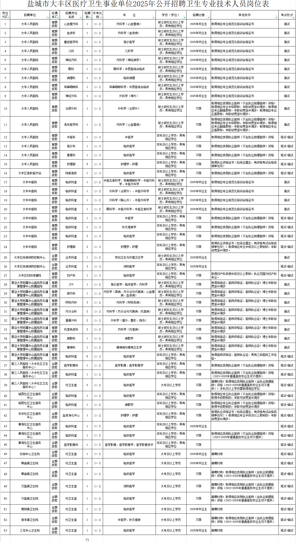 附件:鹽城市大豐區(qū)醫(yī)療衛(wèi)生事業(yè)單位2025年公開(kāi)招聘衛(wèi)生專業(yè)技術(shù)人員崗位表