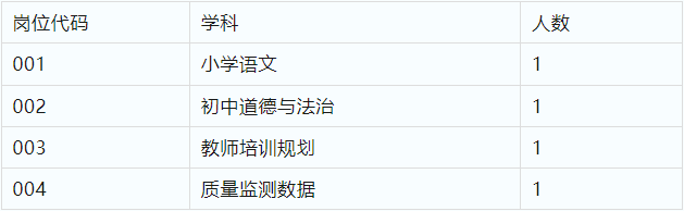003、004崗位:全區公辦中小學在編在崗教師,一線教學工作滿5年,年齡35周歲以下(1990年7月31日以后出生)。
