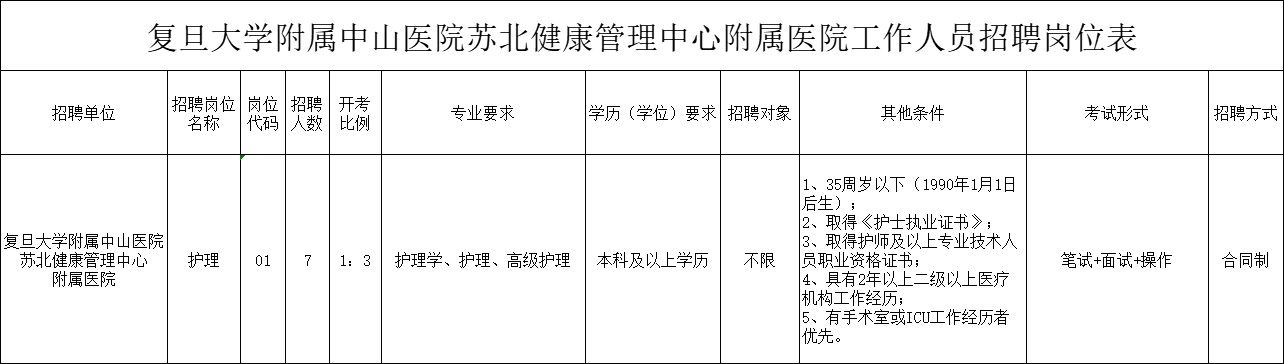 1.復(fù)旦大學(xué)附屬中山醫(yī)院蘇北健康管理中心附屬醫(yī)院工作人員招聘崗位表