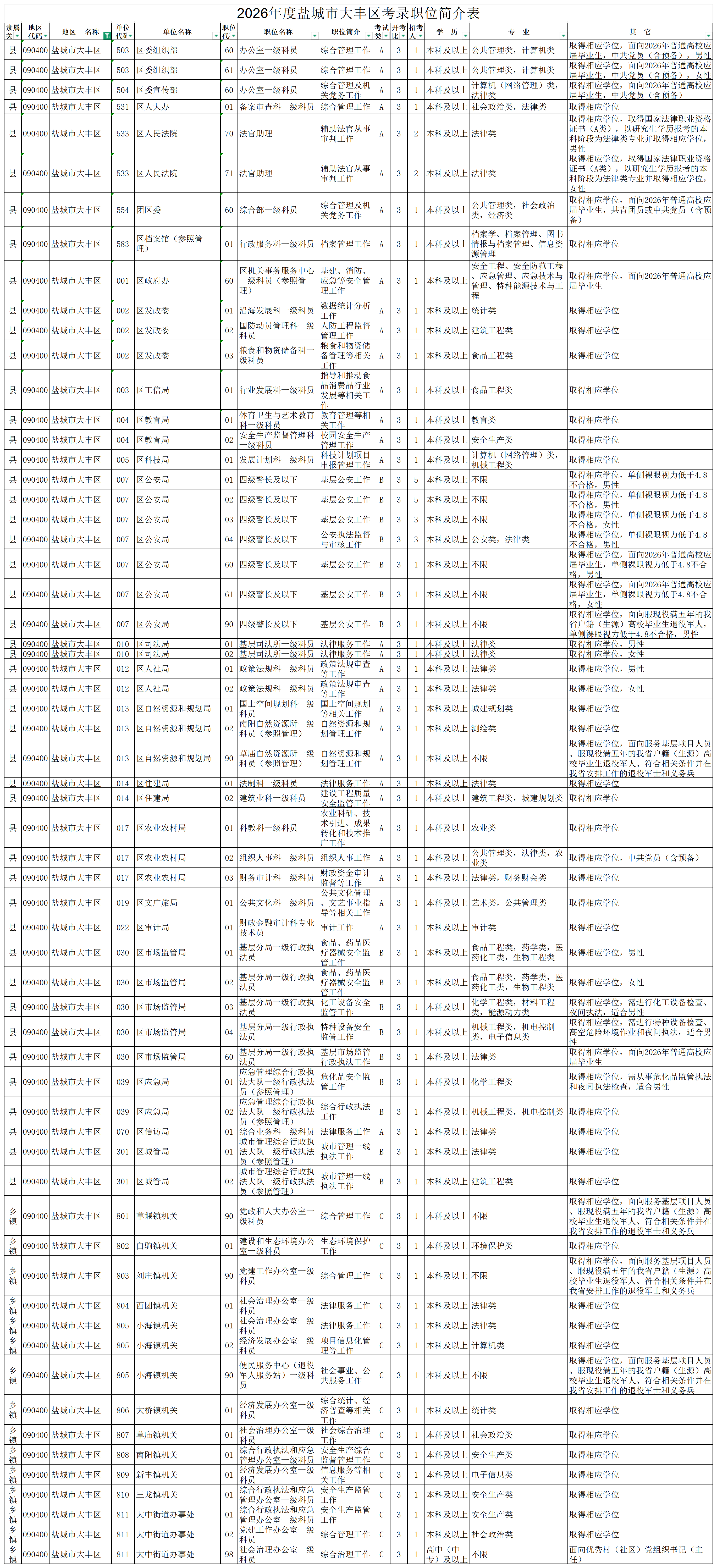 附件:鹽城市2026年度考錄職位簡介表(含垂直管理機構)